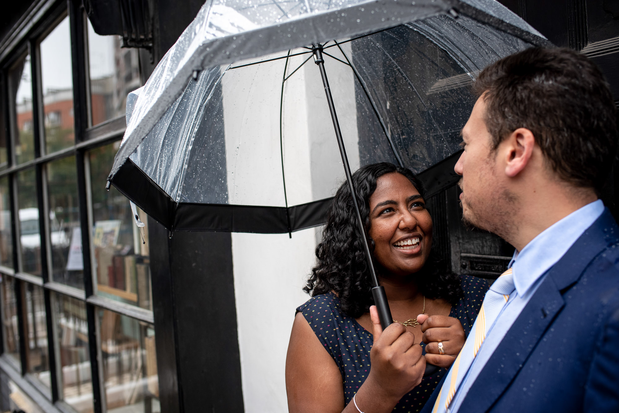 Bring a clear or white umbrella so you can still see each other’s faces